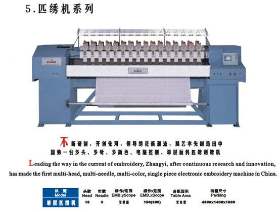 | 本公司是從事研究開發(fā)、生產(chǎn)銷售高檔次“展藝”牌電腦刺繡機(jī)的專業(yè)企業(yè),公司技術(shù)力量雄厚,機(jī)架、臺(tái)版、繡框、運(yùn)行導(dǎo)軌等重要精密… |