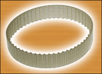 它是以高強(qiáng)度低延伸的化纖繩或鍍銅鋼絲繩為骨架,聚氨酯膠包裹帶的工作面制成齒形(有單面齒形,雙面齒形)與齒形帶輪嚙合傳動。是綜合帶傳動和鏈傳動優(yōu)點(diǎn)的新型傳動帶。