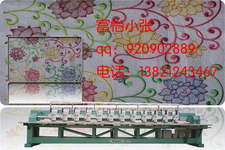 | 全球首創(chuàng)86頭電腦繡花機,每分鐘720轉至800轉,超高產量,花樣精美,飛梭繡花機1/10的價格,百分百的工作效率.圖案更豐富,珠片.毛巾.繩… |